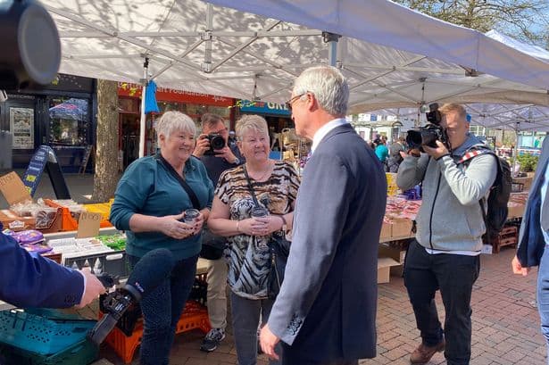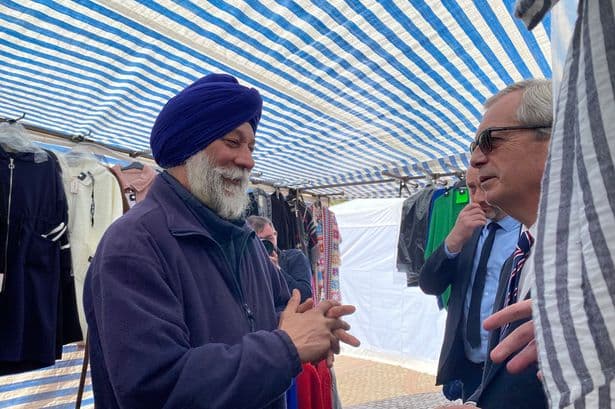 The Reform UK leader held a press conference in Bedworth today (April 7) and then went on a walkabout through the town's market